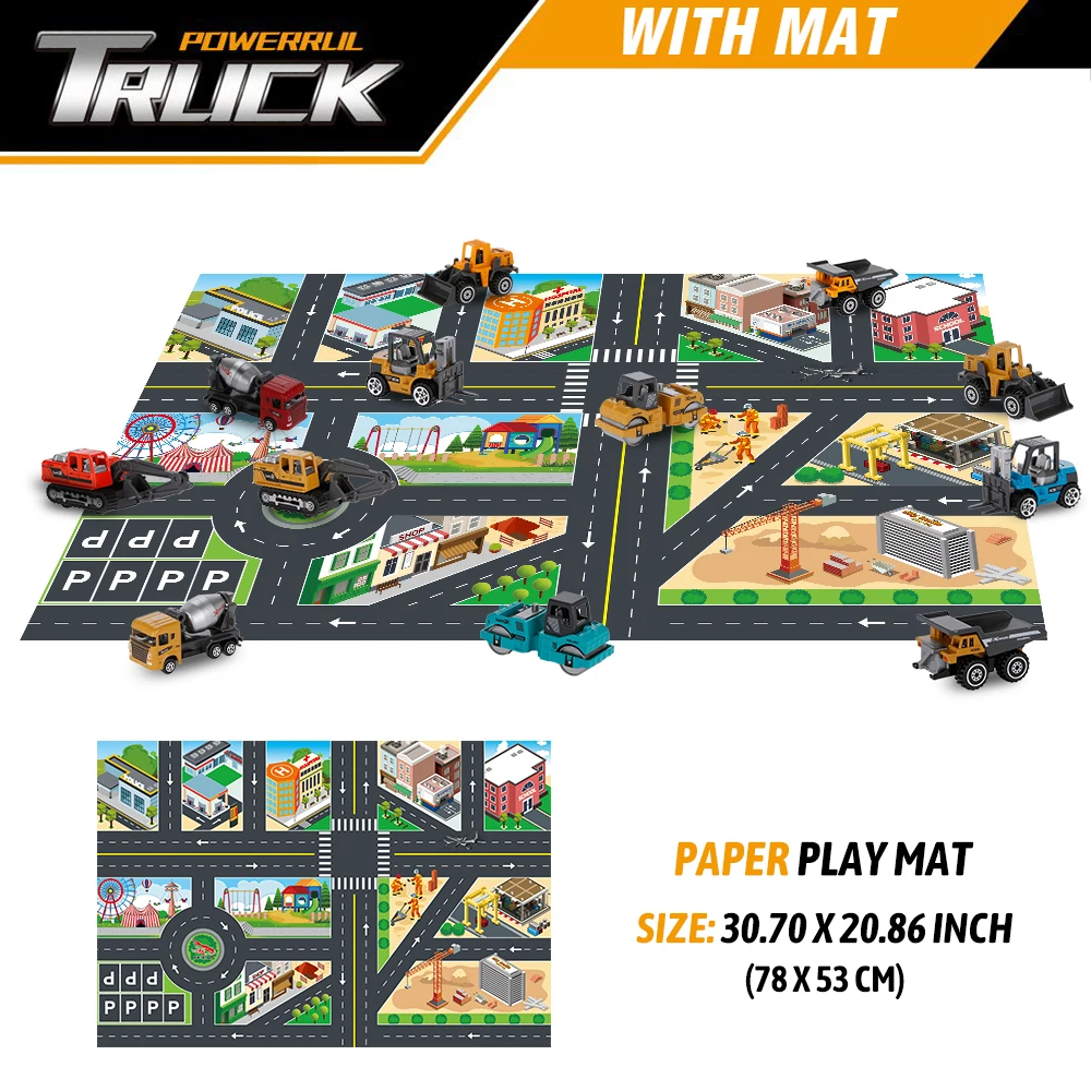 Special Chance for 1:64 Metal Diecast Car Toys, 12pcs Construction Cars Toys with Paper Play Mat, Toy Car for Boys Children Kids Toddler Age 3 4 5