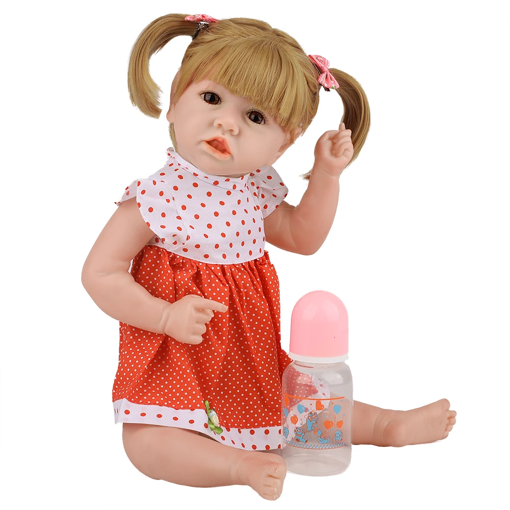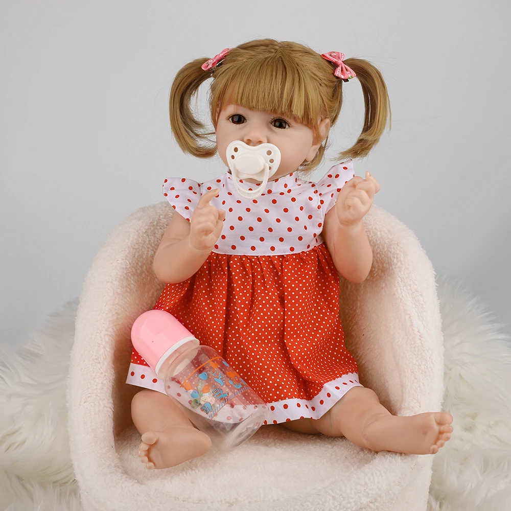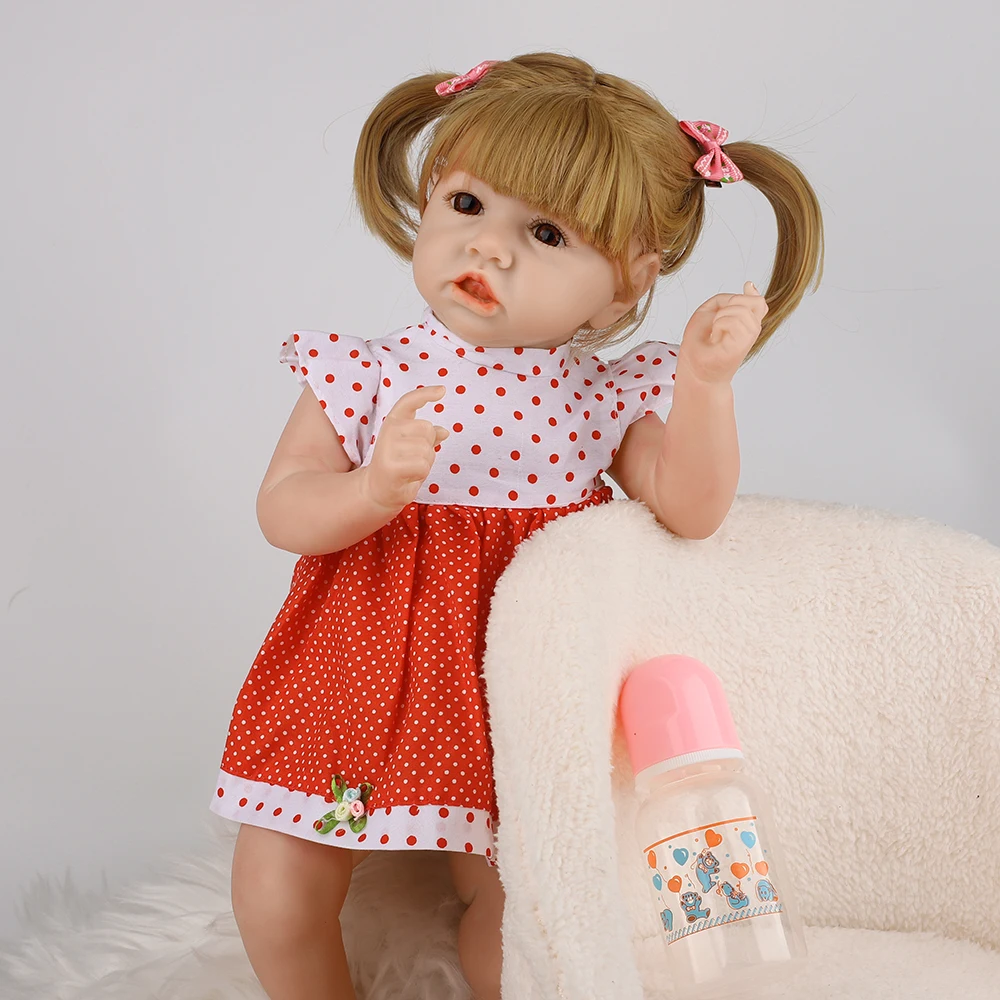 Price Description of 22" Reborn Baby Doll Golden Braid Realistic Lifelike Doll With Crooked Mouth Adorable Handmade Bonecas Full Silicone Body Doll