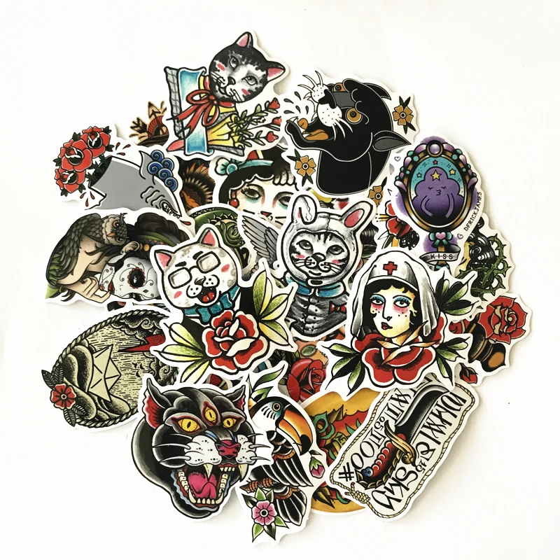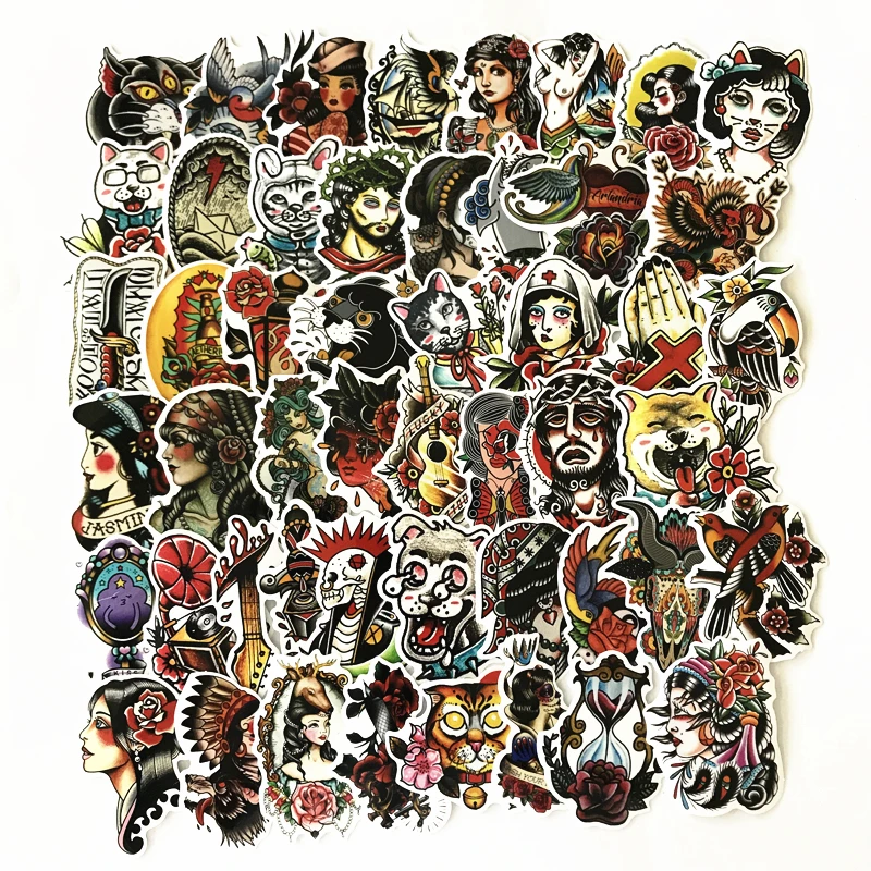 Related Product for [KEYWORD] and TD ZW 50Pcs/lot Old School Tattoo Girl Stickers For Snowboard Laptop Luggage Car Fridge DIY Styling Vinyl Home Decor Pegatina100pcs Stickers 6-10CM DIY Cartoon Waterproof PVC Children Mixed Cartoon Toy Stickers for Skate Car Styling Bike Motorcycle Kids