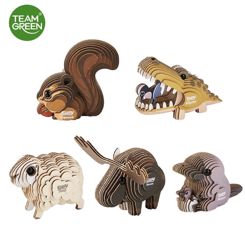 TEAMGREEN Laser Cutting Squirrel Sheep Crocodile Model Toys Kids Puzzle Educational Toys 3d Puzzle Jigsaw Puzzle Assembly Kits
