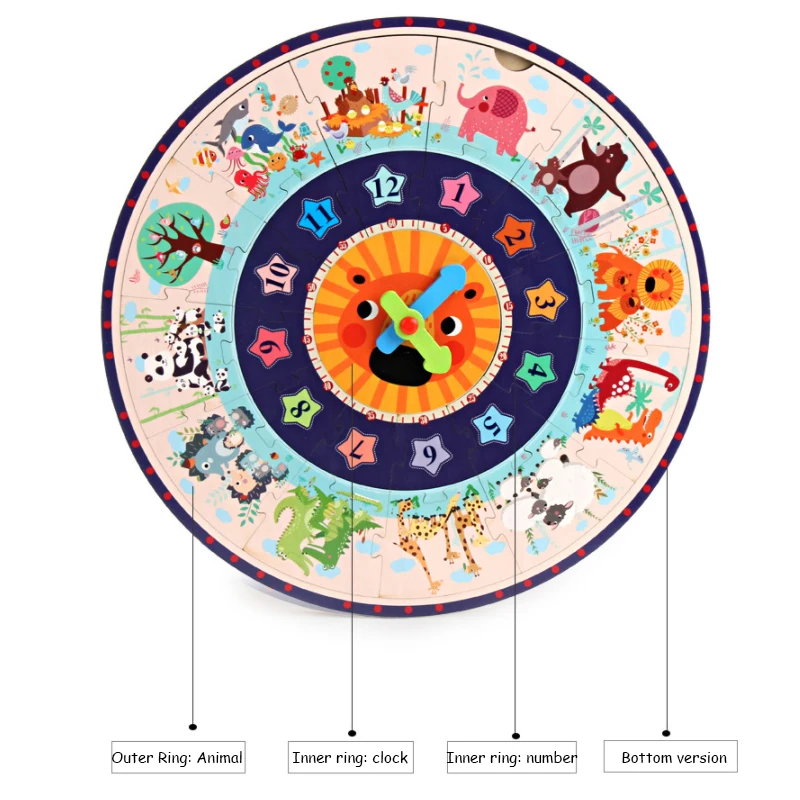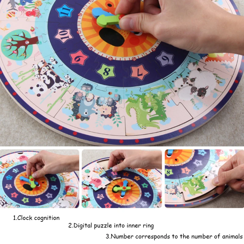 .Gallery for Two-in-one Puzzle Clock Colorful Wooden Puzzle Toy Educational Toys Kids Toys Digital And Time Cognitive Animal Toys For Kids