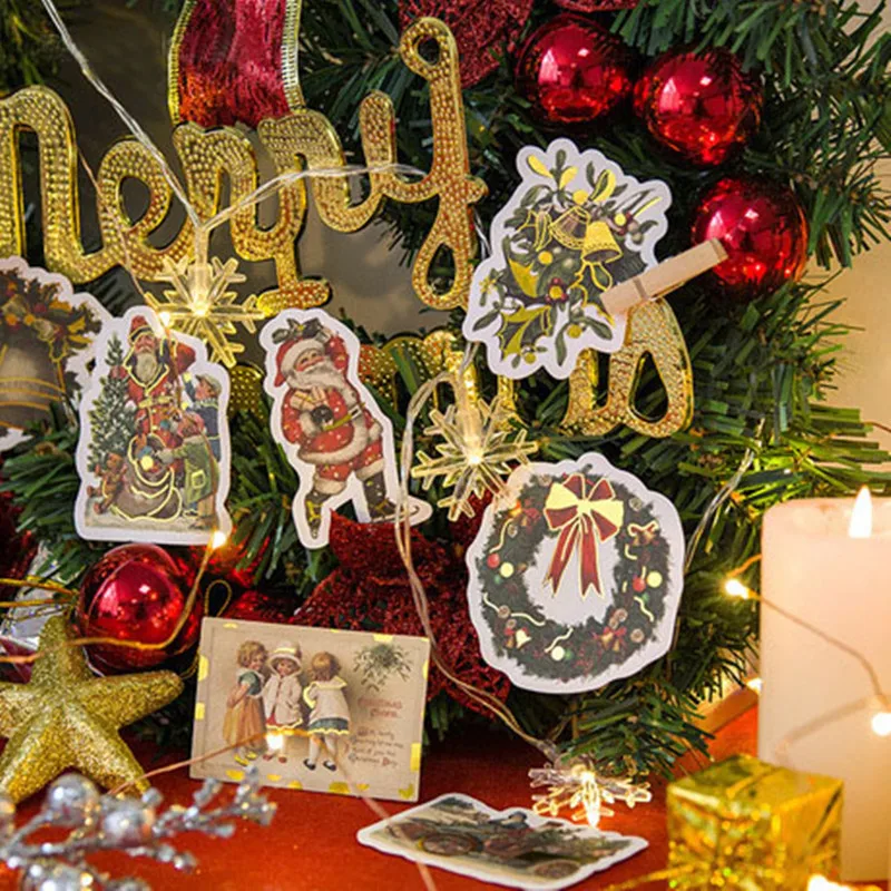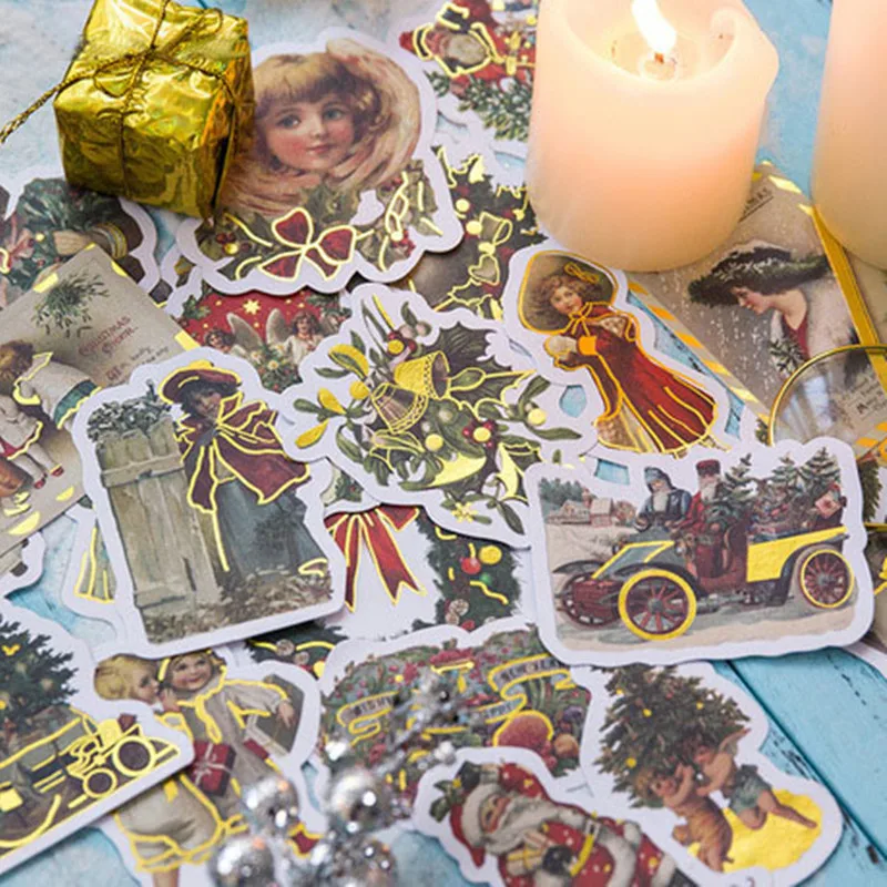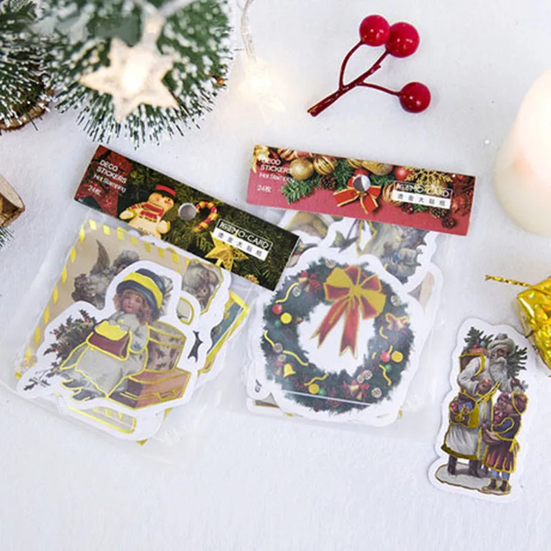 24Pcs/ package Christmas sticker toy retro blessing decorative gilt sticker DIY scrapbook label index sticker bag