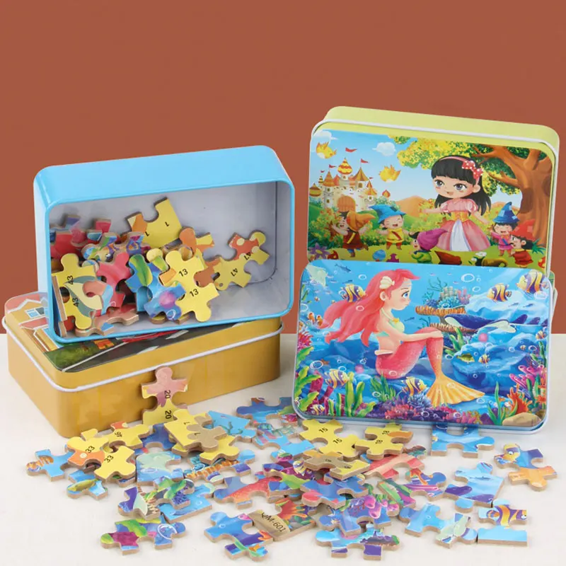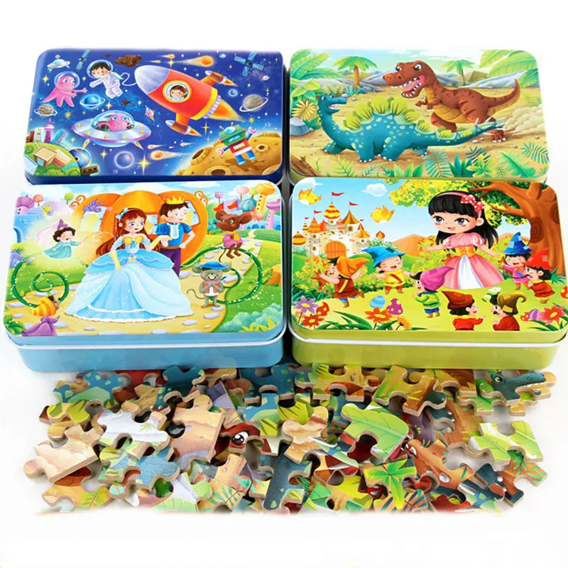 Special Offer for 60 Pieces Of Iron Boxed Cartoon Anime Wooden Puzzle Children's Puzzle Early Education Toys Baby Intelligence Development Toys
