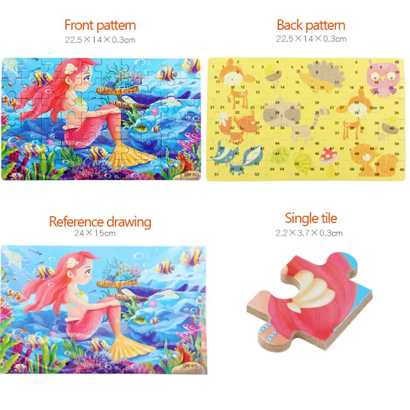 Addition Information of 60 Pieces Of Iron Boxed Cartoon Anime Wooden Puzzle Children's Puzzle Early Education Toys Baby Intelligence Development Toys