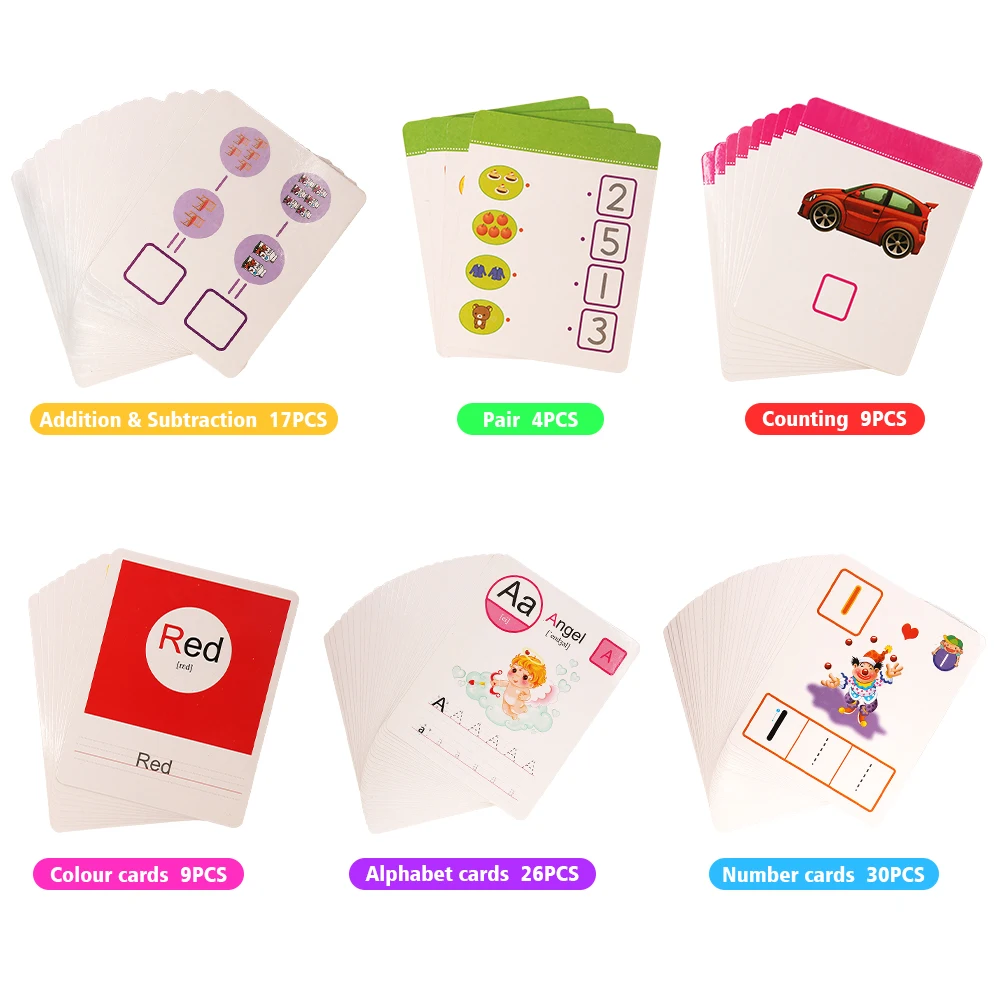 Good Price for 98 Items/lot Smart Gadgets = Rewritten 30 Number cards +26 Alphabet card + 9 Colors Cards + 3 Pens + 9 Counting +21 Other Cards