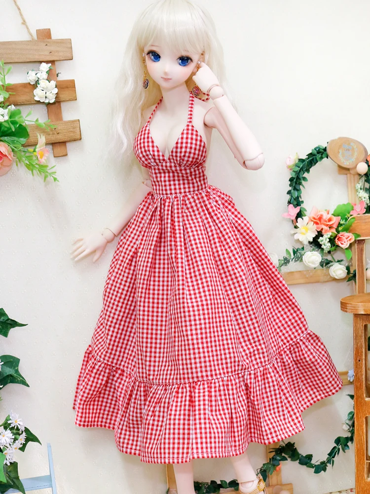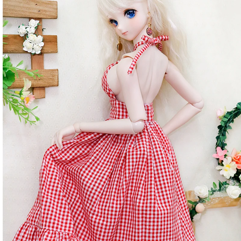 .Gallery for BJD Doll Clothes Summer slip dress Beach skirt Red Plaid sexy Dress Backless 4 colors DDM/DDL 1/3 Custom Doll Accessories