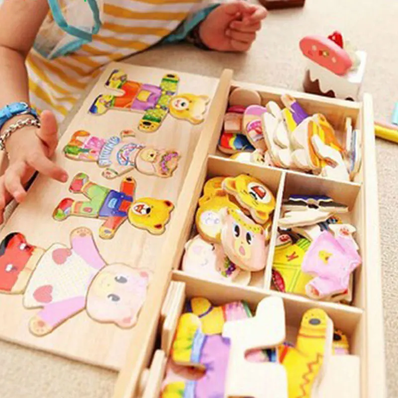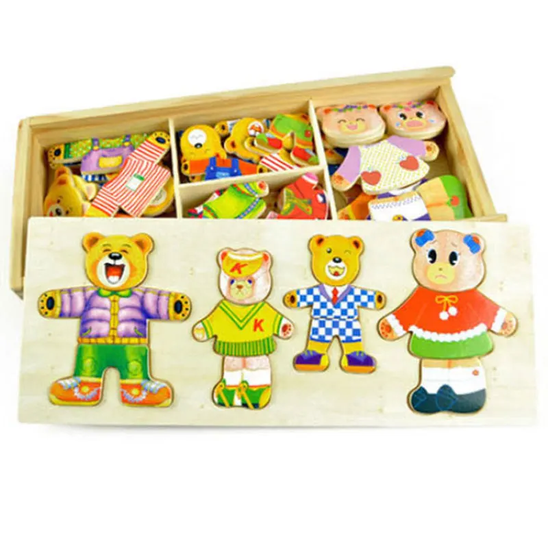 If You want to buy for Games and Puzzles, then Cute Four Bears Dress Up Wooden Game Children's Puzzle Early Education Hand-dressing Pairing Jigsaw Puzzle Toy may be make you like