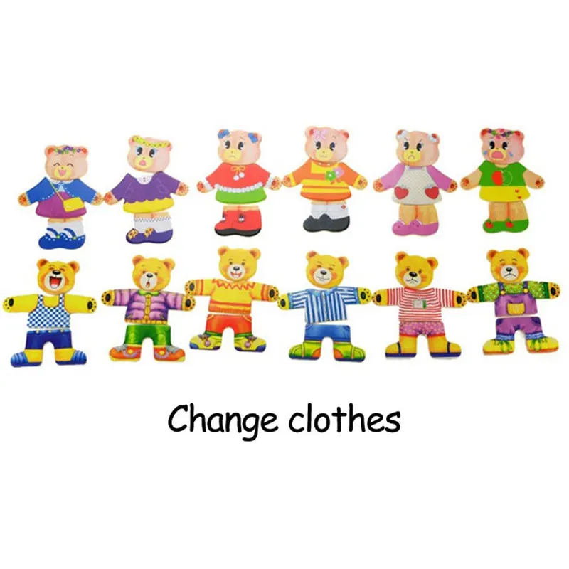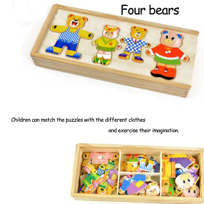 Cute Four Bears Dress Up Wooden Game Children's Puzzle Early Education Hand-dressing Pairing Jigsaw Puzzle Toy