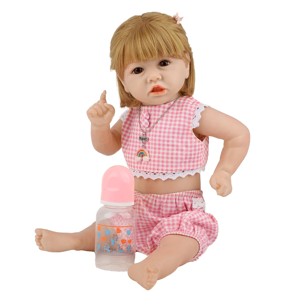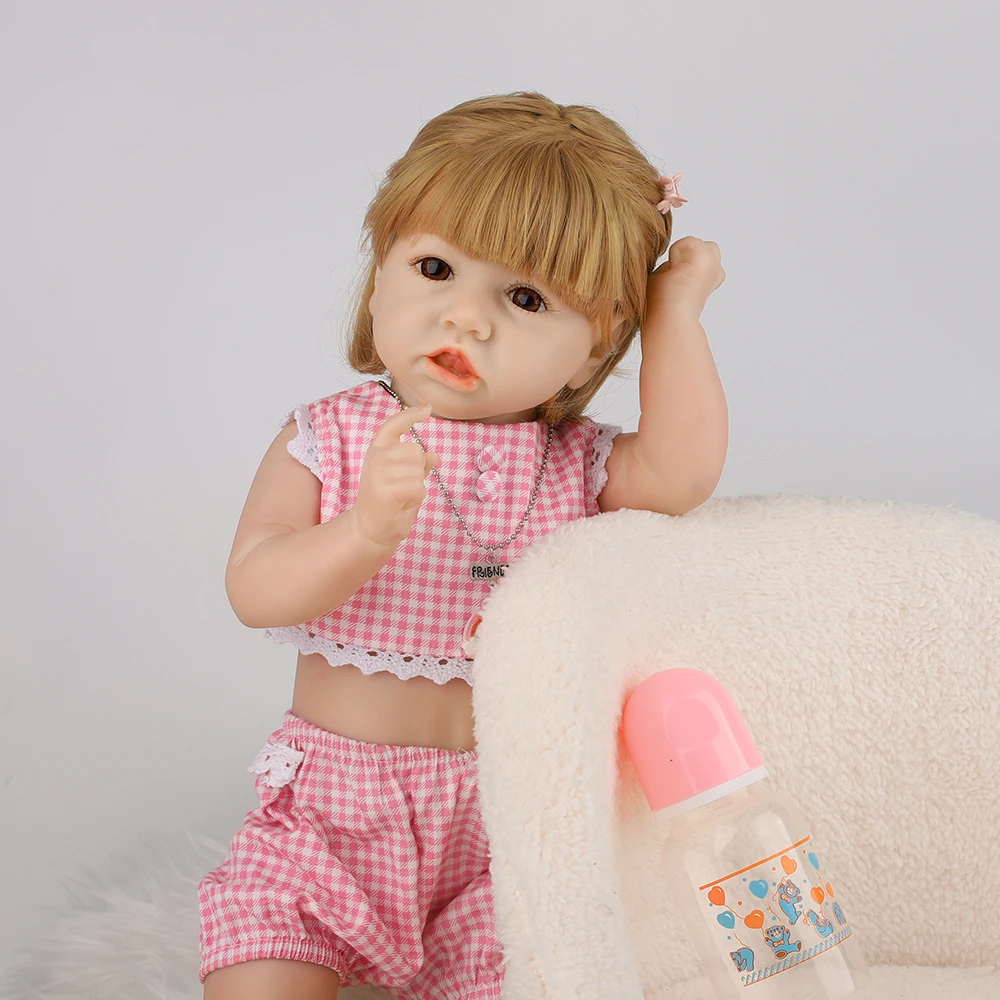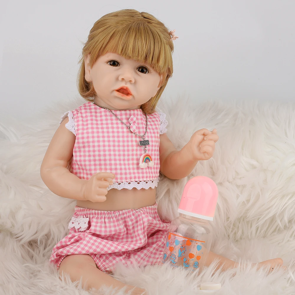Addition Information of Hot Sale 55CM Reborn Baby Doll Golden Hair Realistic Lifelike Doll With Crooked Mouth Adorable Handmade Boneca Toys Xmas Gift