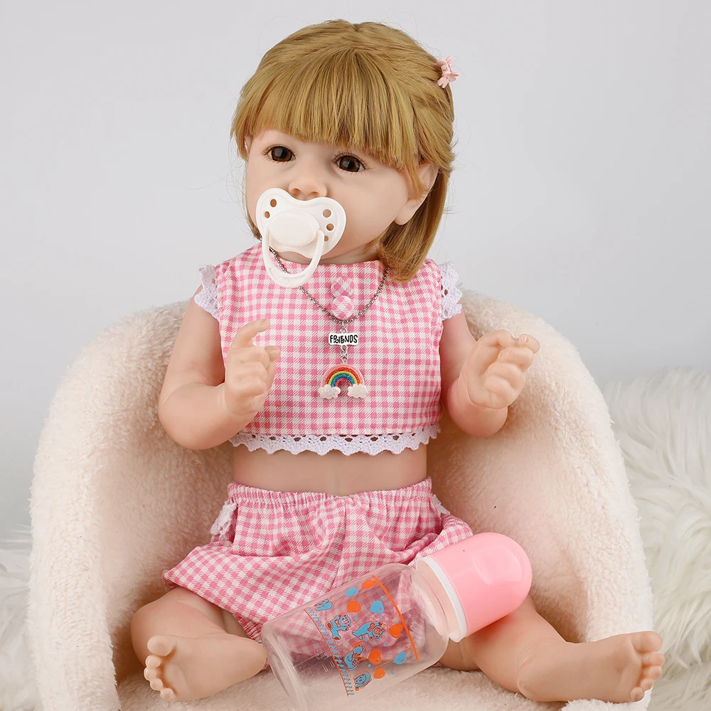 .Images of Hot Sale 55CM Reborn Baby Doll Golden Hair Realistic Lifelike Doll With Crooked Mouth Adorable Handmade Boneca Toys Xmas Gift