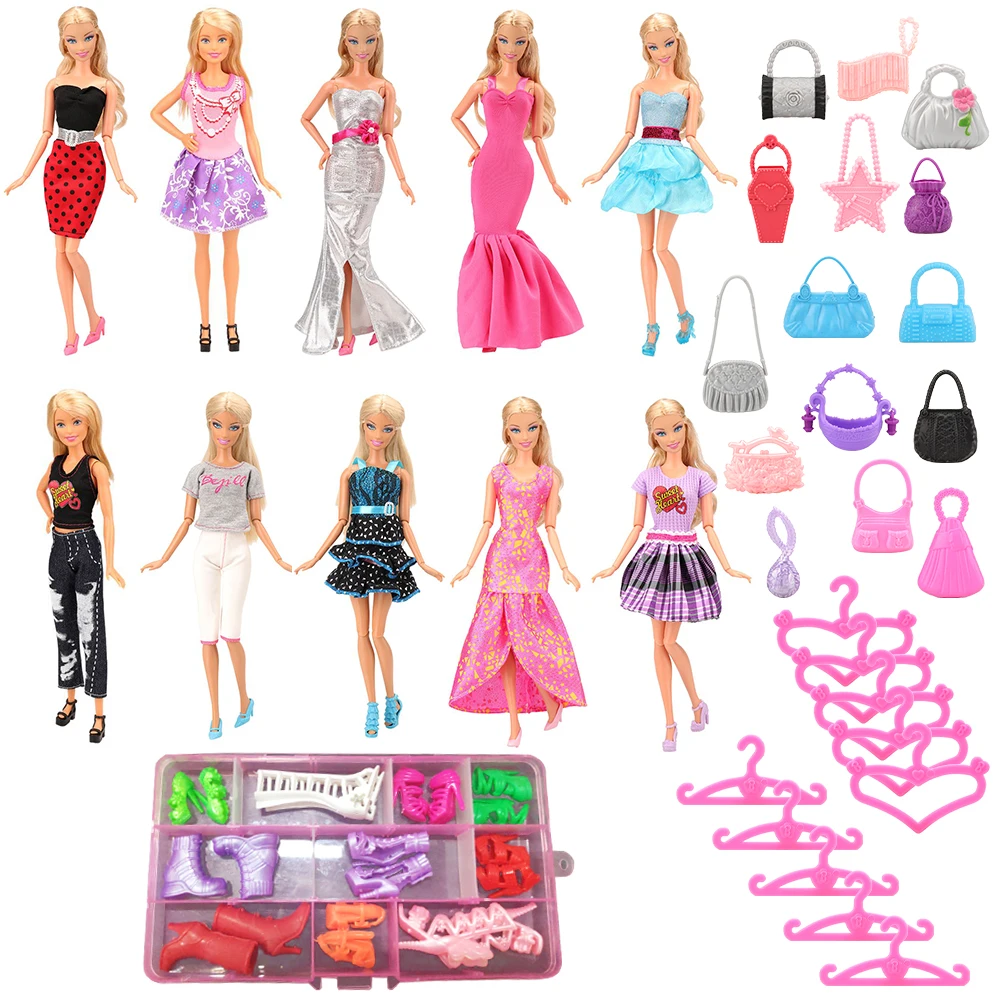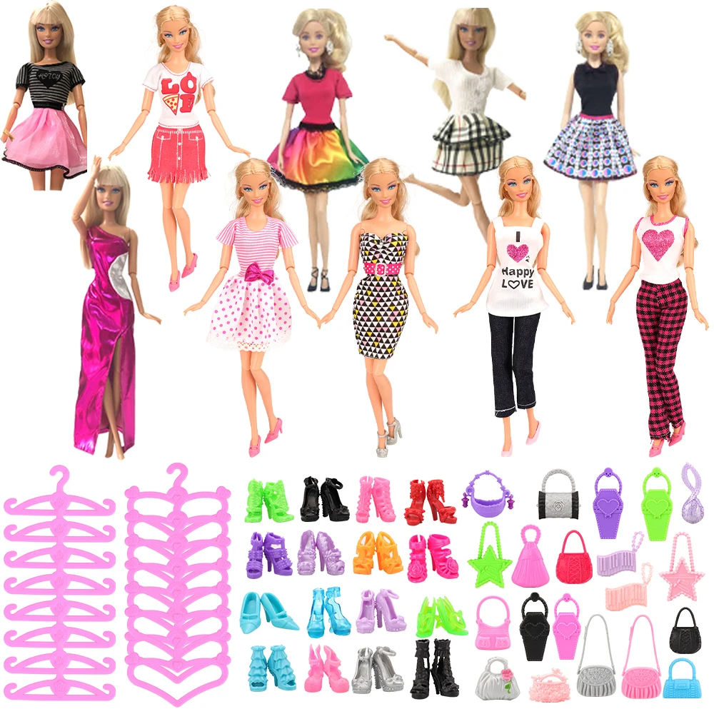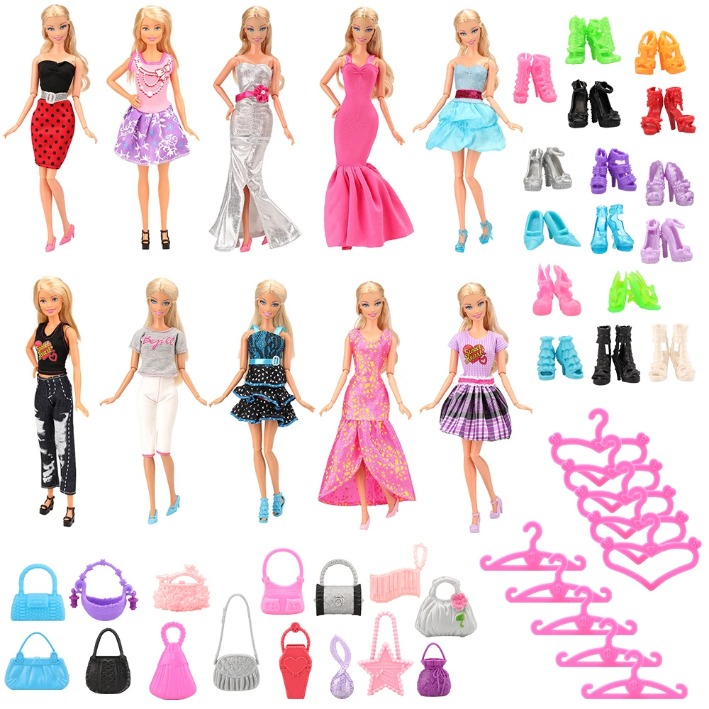 .Gallery of Hot Sale Fashion Dolls Accessory 43 Items/lot=10 Clothes +10 Shoes +10 Hangers + 13 Accessories For Barbie Dressing Game Gift
