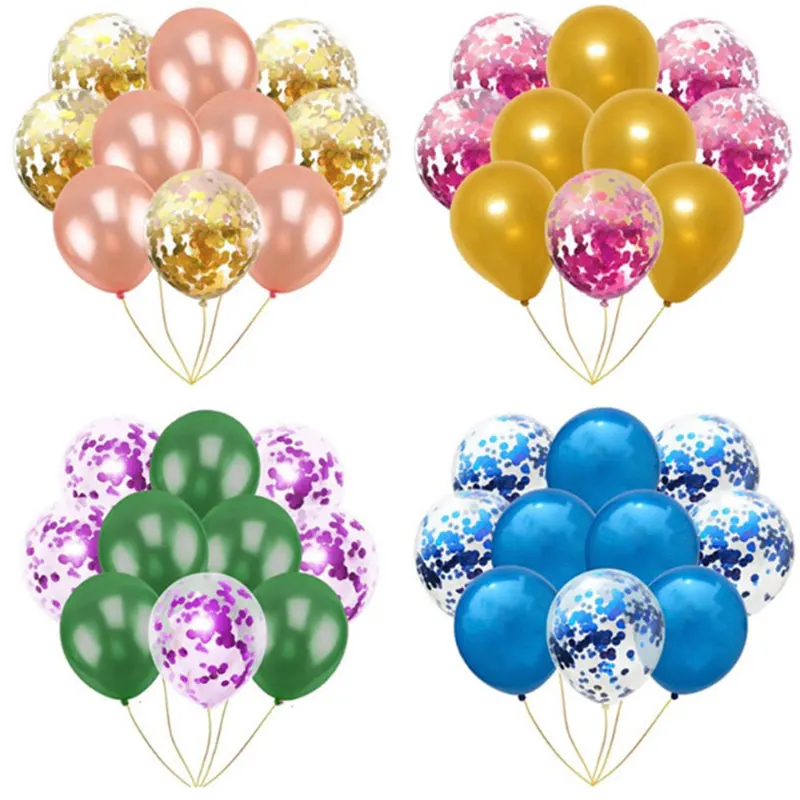 10 Pack 12 Inch Latex Foil Sequin Floating Balloons Festival Party Decorations Wedding Room Set Transparent Balloons