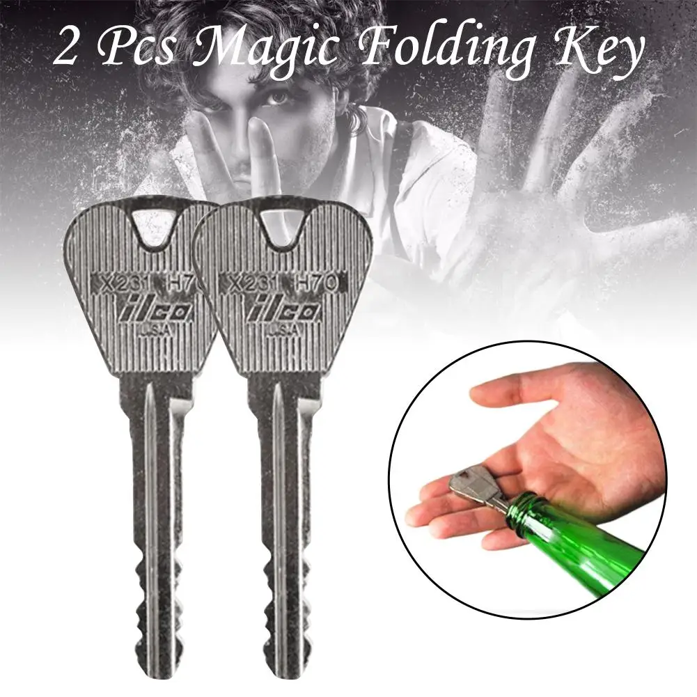 Best Chance of 2 Pieces Folding Deformation Key Magic Key Props Toy Stage Magic Props Toys For Beginners Magician Professional Deformation Key