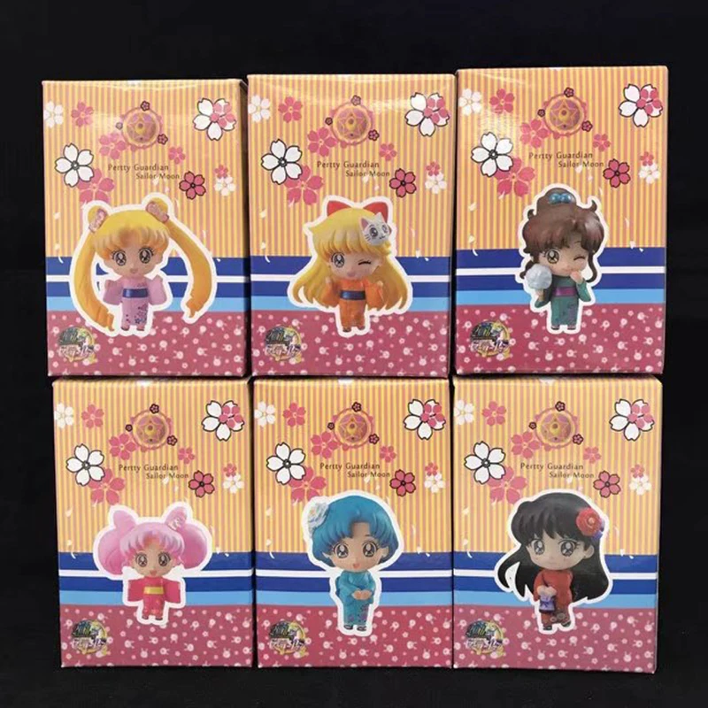 Offer Description of 6pcs/set Sailor Moon Tsukino Usagi Mercury Sailor Mar 20th Anniversary Kimono Ver. PVC Figure Collectible Model Toy
