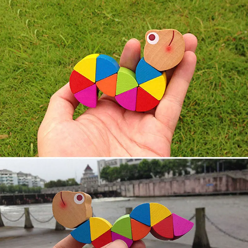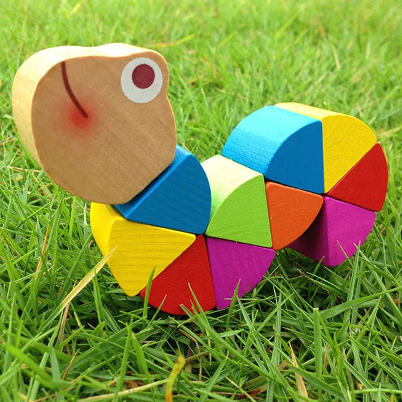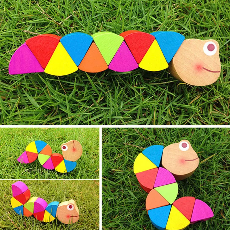 Cute Wooden Colorful Caterpillar Children Early Education Puzzle Animal Doll Color Twisted Insect Toy