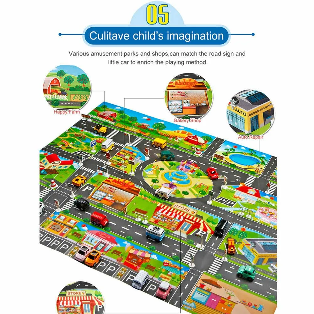 Home Car Traffic Road Signs City Scene Educational Kids Baby Play Mat Carpet