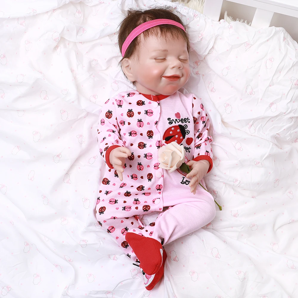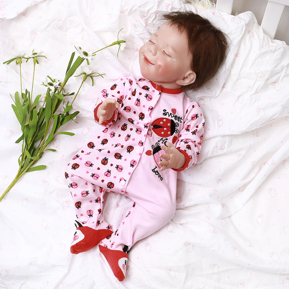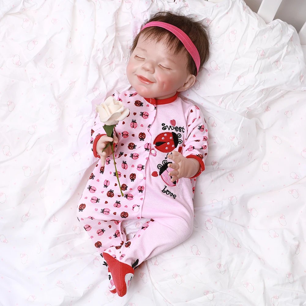Good Price for NEW Reborn Baby Doll With Crooked Mouth Realistic Lifelike 17" Eyes closed Reborn Baby Doll Full Silicone Body Adorable Dolls