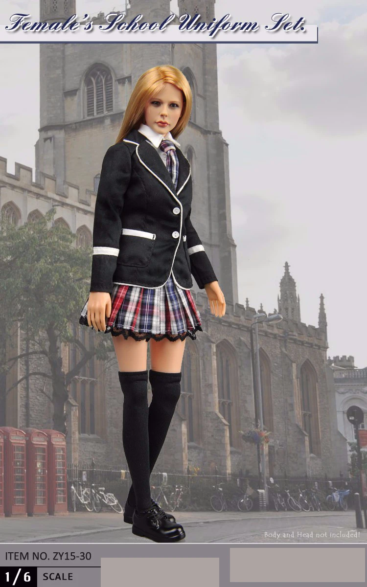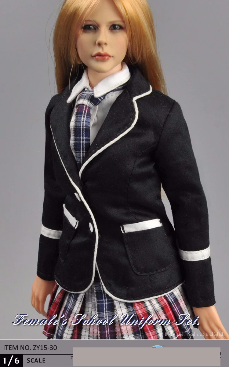 .Images of Newest 1/6 Scale Female's School Uniform Set Black Clothes Model For 12" Action Figure Toys Accessories