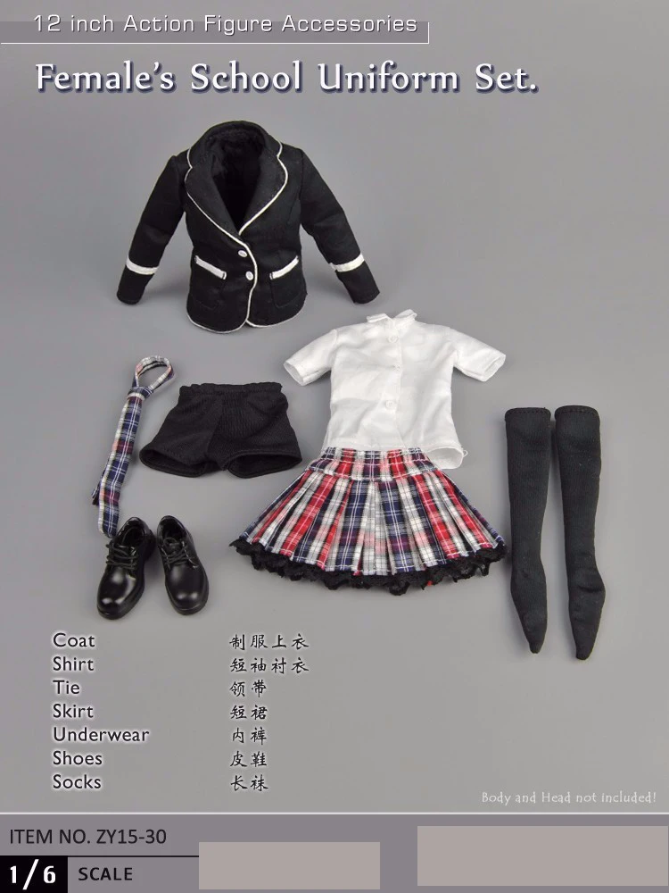 Addition Information of Newest 1/6 Scale Female's School Uniform Set Black Clothes Model For 12" Action Figure Toys Accessories